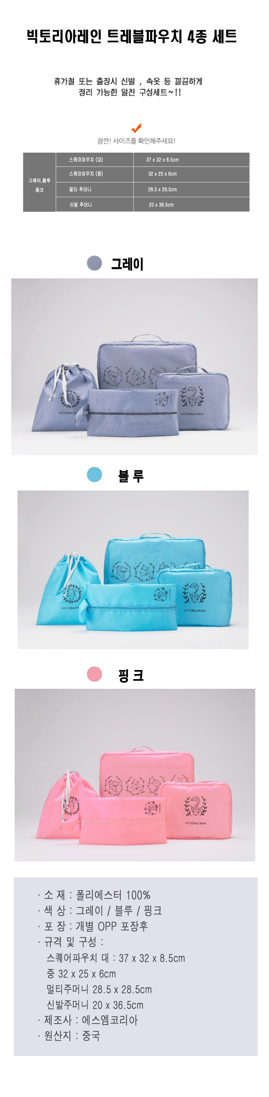 [빅토리아레인] 여행용 정리백 4종 세트