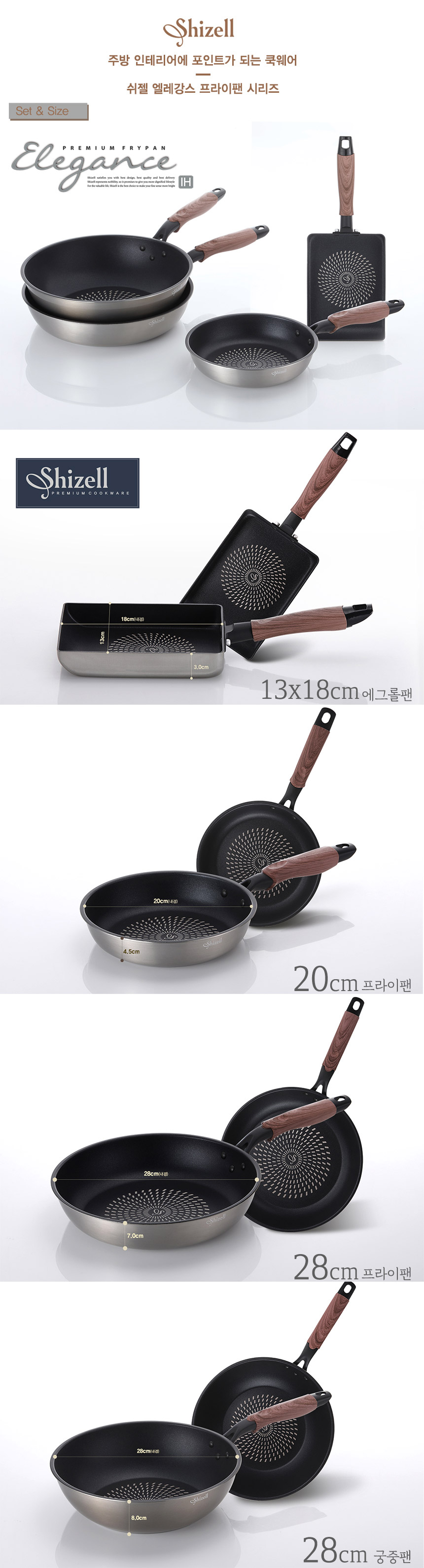 [쉬젤] 엘레강스 IH 프라이팬 4종세트 (에그롤팬, 프라이팬20/28cm,궁중팬 28cm)