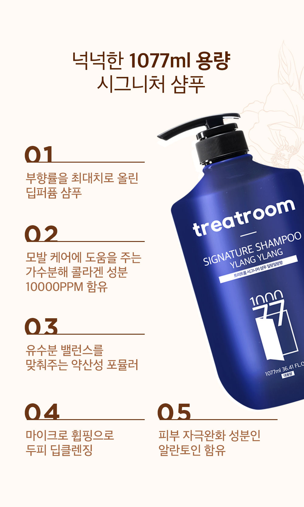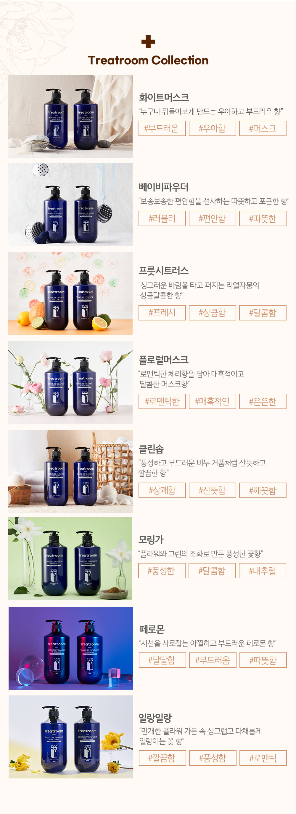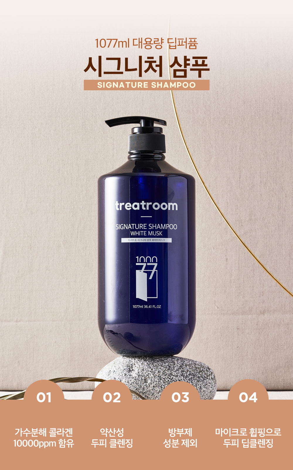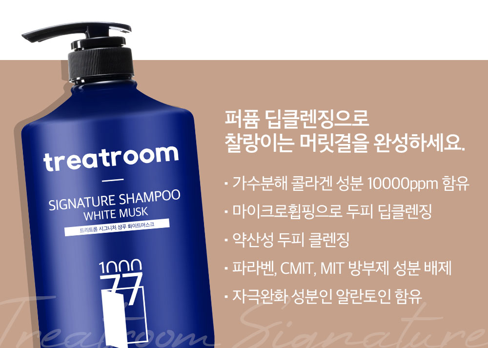 [트리트룸] 시그니처 샴푸(화이트머스크,베이비파우더,프룻시트러스,플로럴머스크,클린솝,모링가,페로몬,일랑일랑) 1077ml