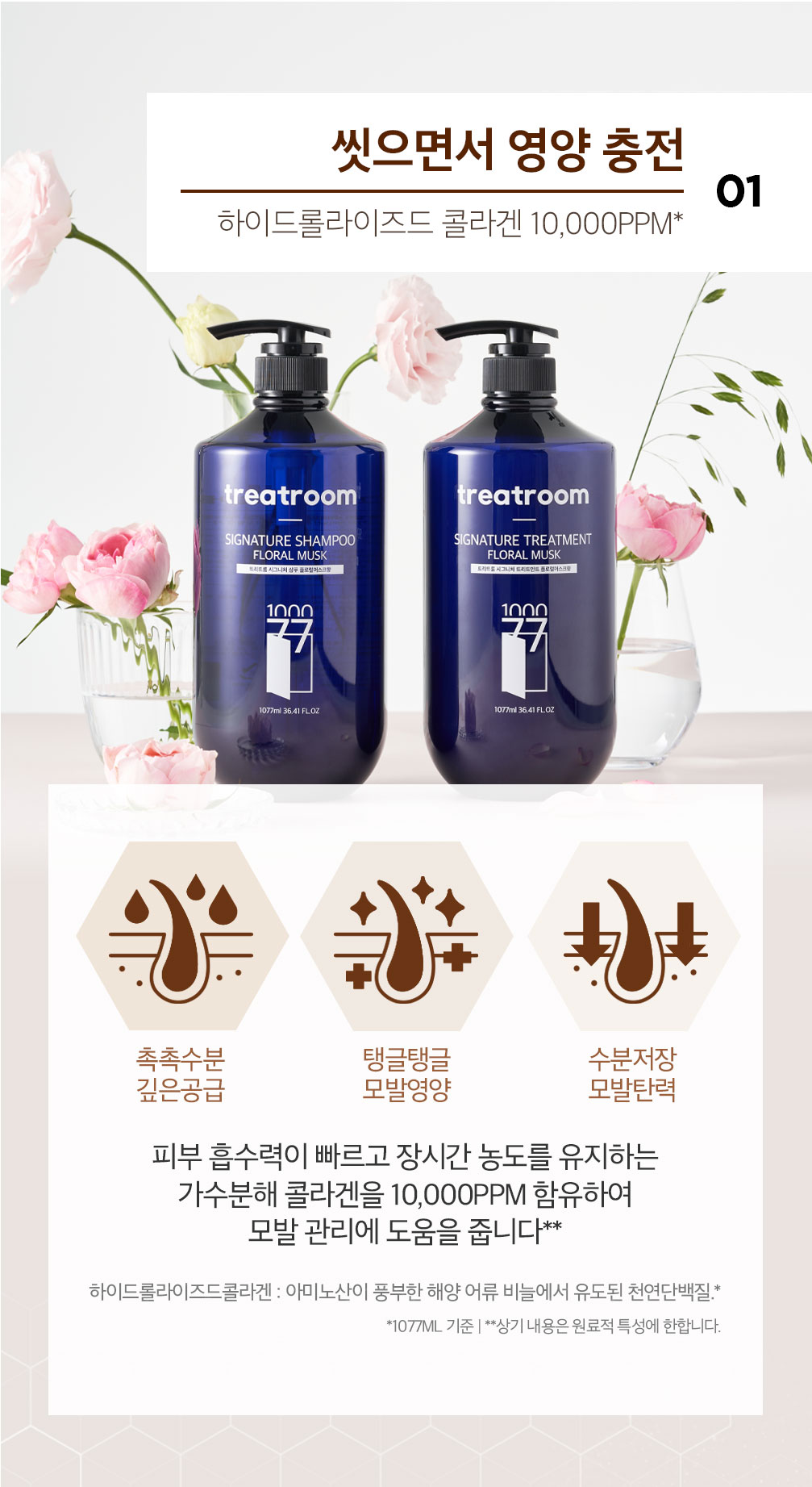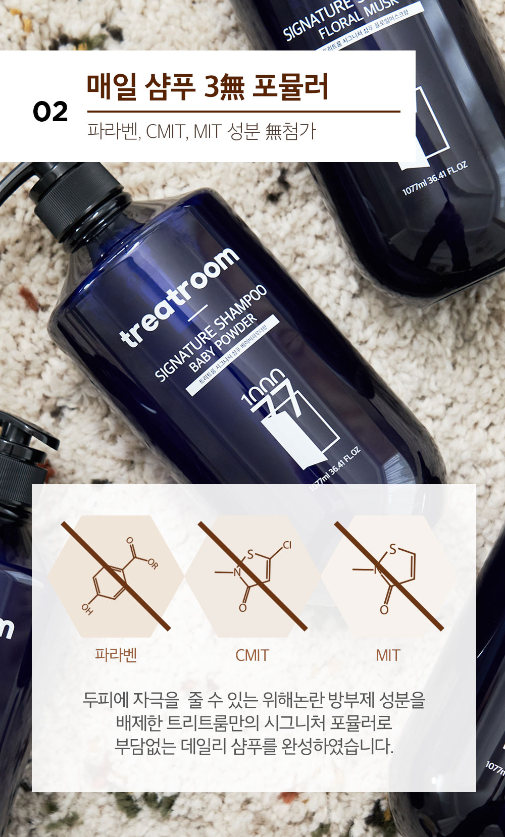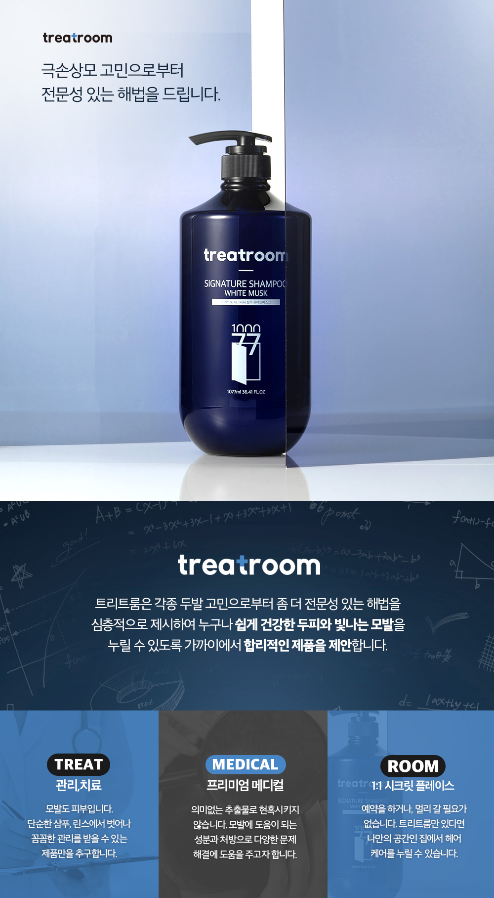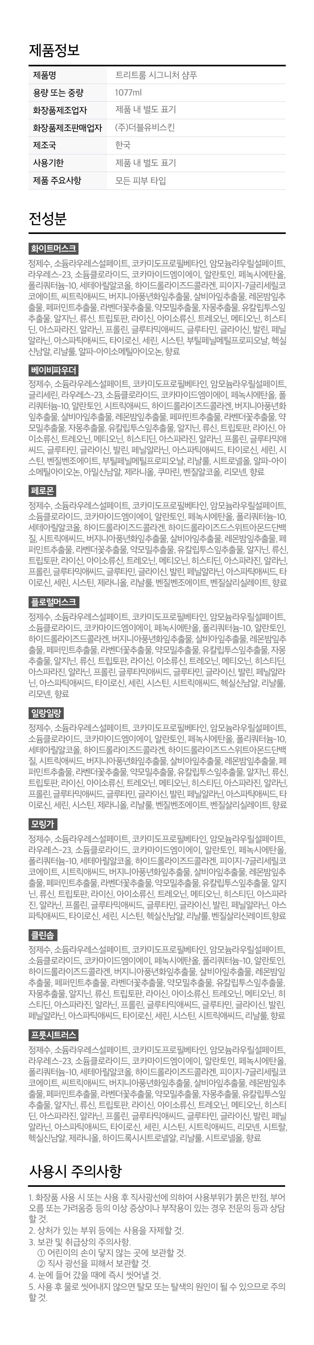 [트리트룸] 시그니처 샴푸(화이트머스크,베이비파우더,프룻시트러스,플로럴머스크,클린솝,모링가,페로몬,일랑일랑) 1077ml