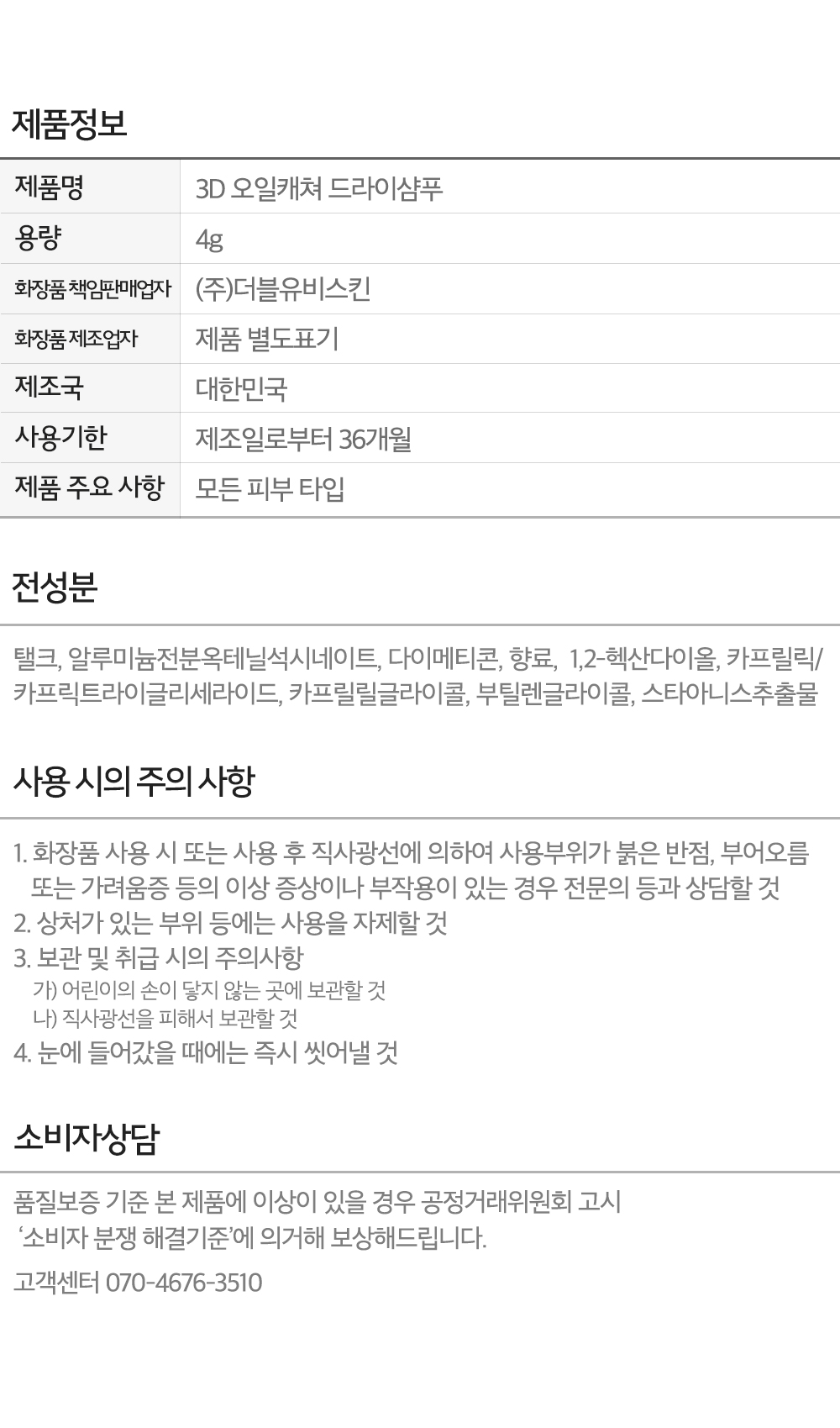 [트리트룸] 3D 오일캐쳐 드라이샴푸 - N3