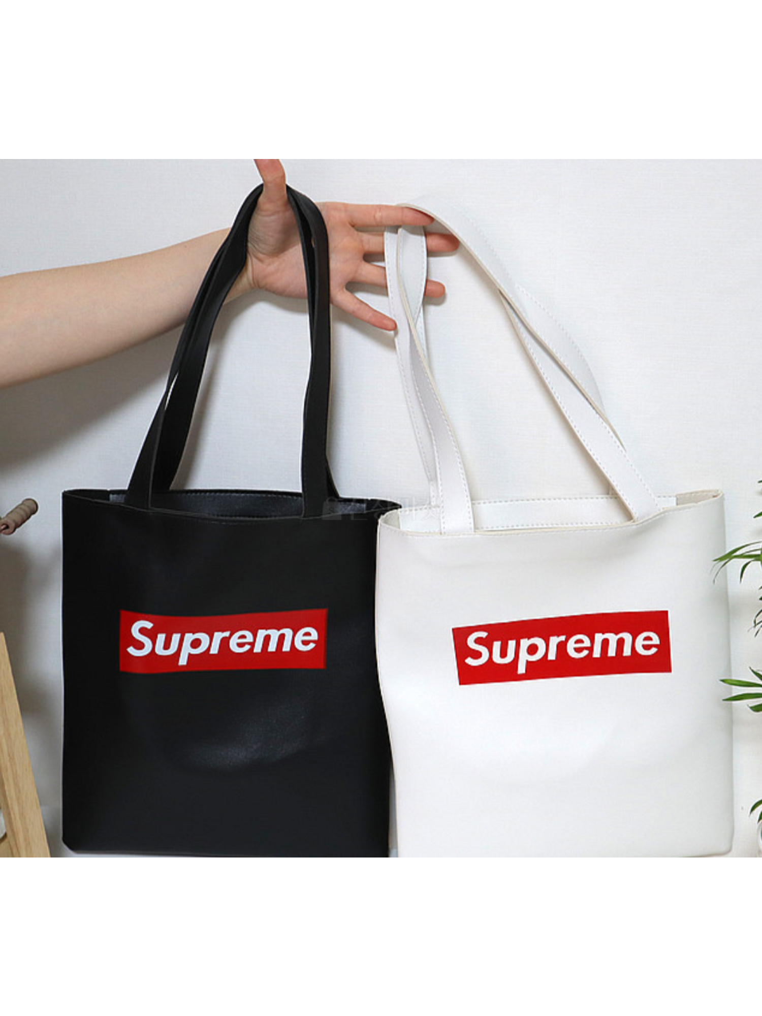 supreme가죽에코백
