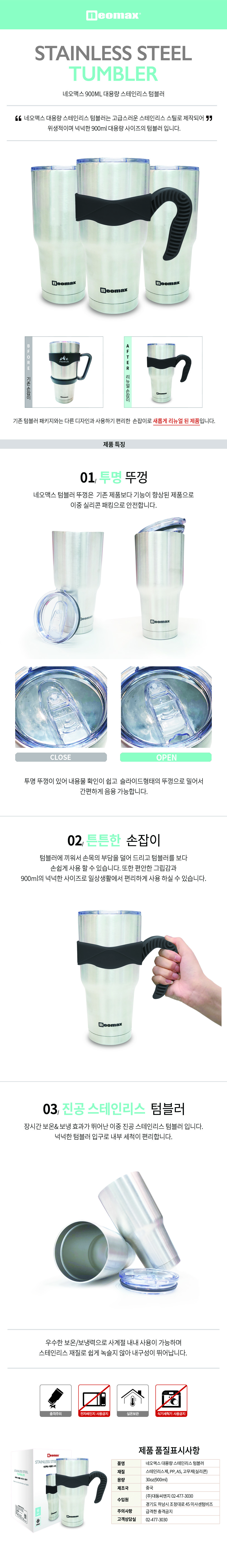 [네오맥스] 대용량 스텐텀블러 900ml