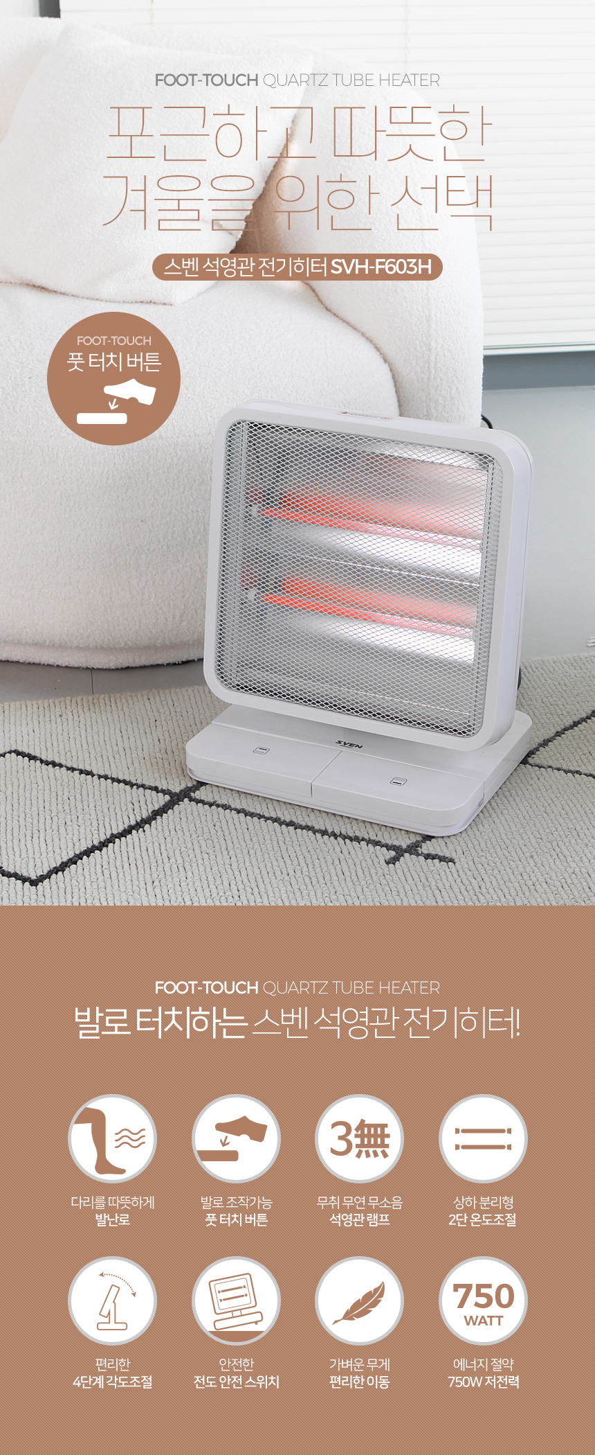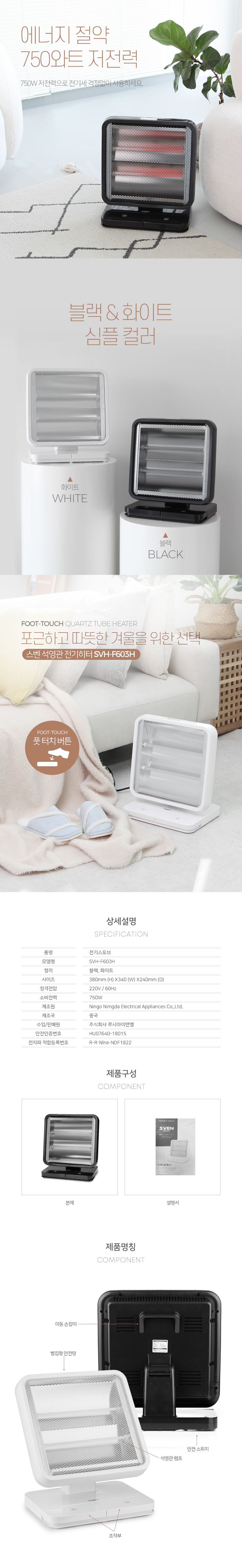 스벤 발터치 2단 석영관 전기히터 SVH-F603H (블랙/ 화이트)